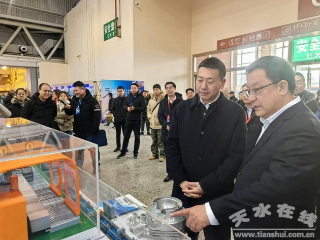 工業(yè)和信息化部產(chǎn)業(yè)政策與法規(guī)司一級(jí)巡視員崔淑田,甘肅省工信廳廳長(zhǎng)韓顯明,天水市副市長(zhǎng)儲(chǔ)著貞等親臨大賽現(xiàn)場(chǎng),參觀公司參賽產(chǎn)品。