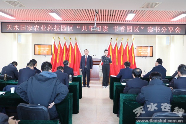 為深入貫徹落實(shí)中央和省、市委關(guān)于建設(shè)學(xué)習(xí)型黨組織要求,努力營(yíng)造濃厚的學(xué)習(xí)氛圍。12月12日,天水國(guó)家農(nóng)業(yè)科技園區(qū)黨工委舉辦“共享閱讀 書(shū)香園區(qū)”讀書(shū)分享會(huì),園區(qū)管委會(huì)全體黨員干部職工及各駐園企業(yè)代表共計(jì)40余人參加,市委直屬機(jī)關(guān)工委副書(shū)記毛金來(lái)作現(xiàn)場(chǎng)指導(dǎo)。