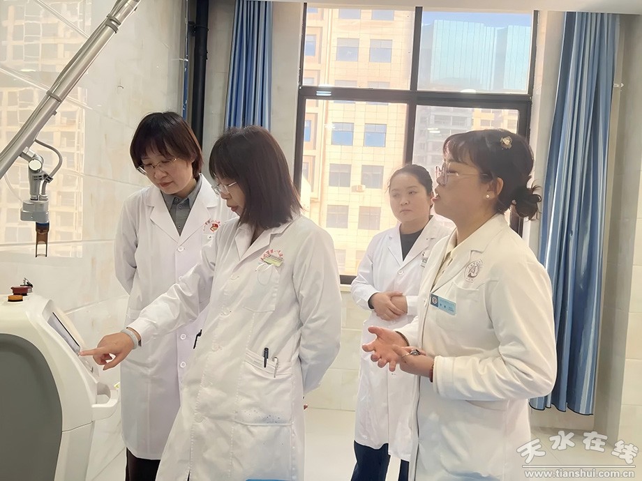 隨后,在秦州區(qū)人民醫(yī)院洪慶國副院長的陪同下,督導(dǎo)組成員參觀了皮膚科門診診療區(qū)域。他們詳細(xì)了解該科室已經(jīng)開展的皮膚美容激光治療項(xiàng)目,并進(jìn)行了技術(shù)培訓(xùn)。通過實(shí)地考察和技術(shù)指導(dǎo),督導(dǎo)組成員幫助秦州區(qū)人民醫(yī)院皮膚科進(jìn)一步提升了技術(shù)水平和服務(wù)質(zhì)量。