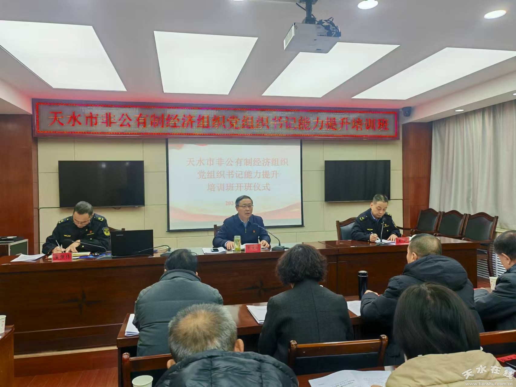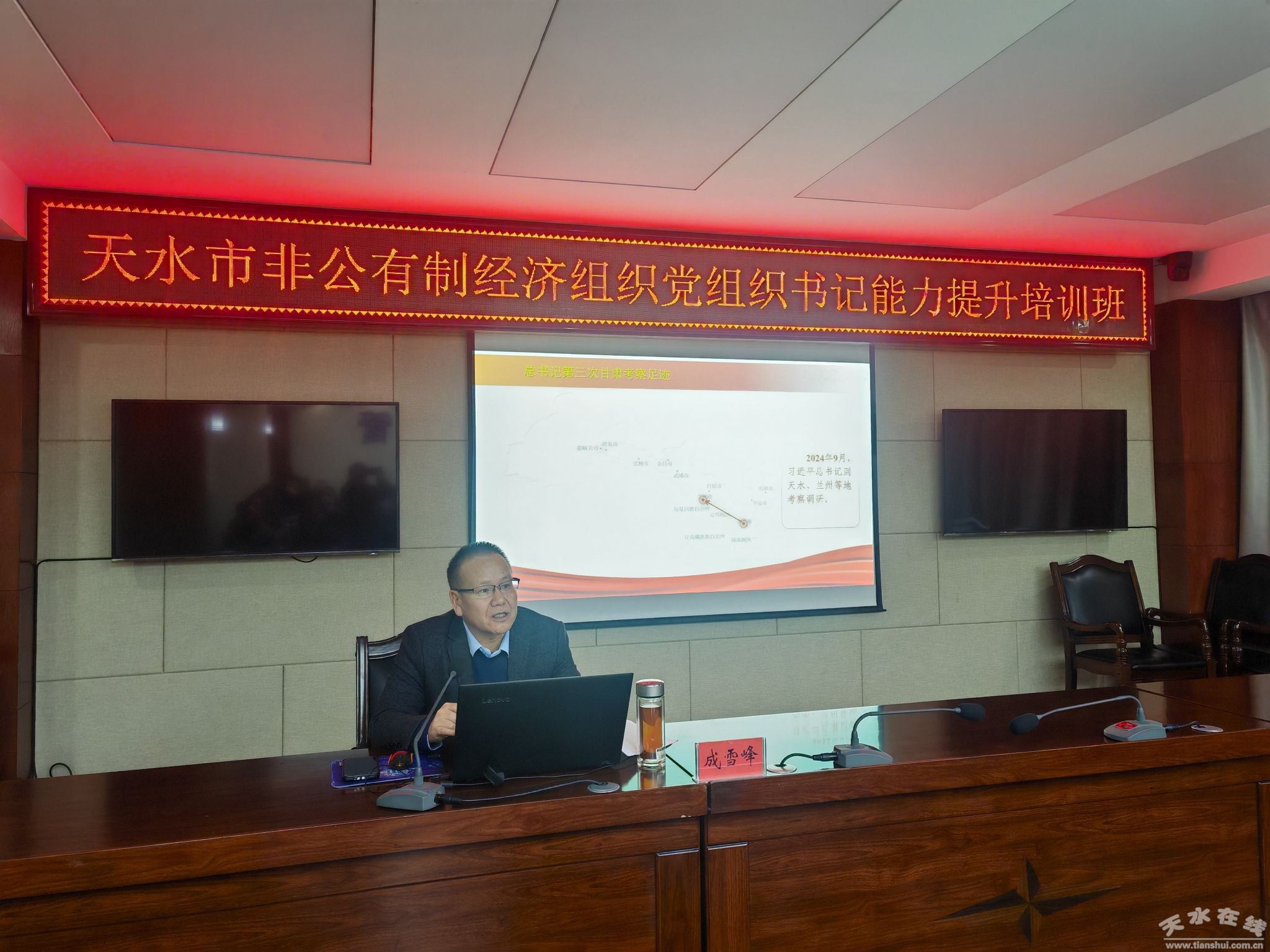 為深入學(xué)習(xí)貫徹黨的二十大和黨的二十屆三中全會(huì)精神,認(rèn)真貫徹落實(shí)習(xí)近平總書(shū)記視察甘肅重要講話重要指示精神,全面提升非公經(jīng)濟(jì)組織黨組織書(shū)記及黨務(wù)專(zhuān)干黨建工作能力。近日,天水市非公經(jīng)濟(jì)黨組織2024年度學(xué)習(xí)貫徹習(xí)近平總書(shū)記視察甘肅重要講話精神暨黨組織書(shū)記能力提升培訓(xùn)班在市市場(chǎng)監(jiān)管局成功舉辦。市市場(chǎng)監(jiān)管局黨組成員、副局長(zhǎng)賈文斌作了動(dòng)員講話,并圍繞《中國(guó)共產(chǎn)黨支部工作條例(試行)》進(jìn)行輔導(dǎo)授課。市屬非公企業(yè)黨組織書(shū)記、黨務(wù)專(zhuān)干共計(jì)60余人參加了培訓(xùn)。