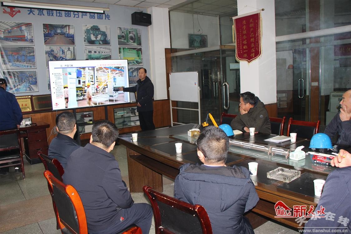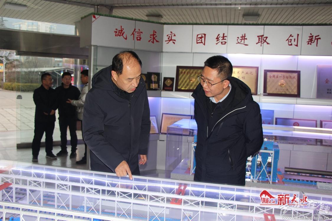 新天水訊 12月25日,省工信廳副廳長鄧話,省裝備處處長李靖紅、副處長劉曉峰等到天水鍛壓機床(集團)有限公司調(diào)研企業(yè)新產(chǎn)品研發(fā)及生產(chǎn)經(jīng)營情況,了解企業(yè)存在的困境問題。市工信局局長胡亞軍,集團公司黨委書記、董事長陳鴻等參加調(diào)研。