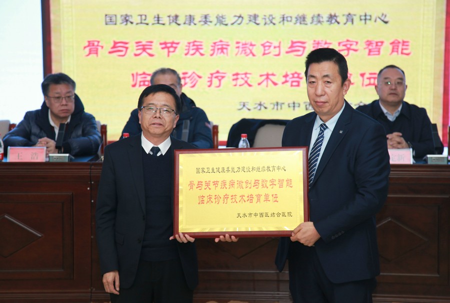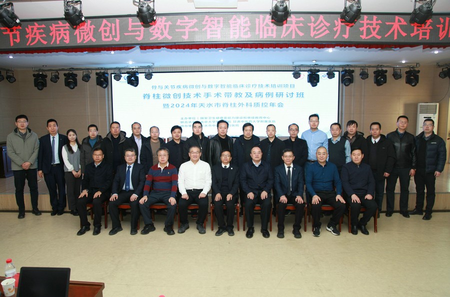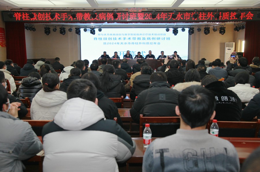 12月28日,由國(guó)家衛(wèi)生健康委能力建設(shè)和繼續(xù)教育中心主辦,甘肅中醫(yī)藥大學(xué)附屬醫(yī)院(全國(guó)基地)承辦,天水市中西醫(yī)結(jié)合醫(yī)院(市二院)協(xié)辦的骨與關(guān)節(jié)疾病微創(chuàng)與數(shù)字智能臨床診療技術(shù)培訓(xùn)項(xiàng)目脊柱微創(chuàng)技術(shù)手術(shù)帶教及病例研討班暨2024年天水市脊柱外科質(zhì)控年會(huì)在市二院多功能廳順利召開。邀請(qǐng)?zhí)焖行l(wèi)生健康委黨組書記、主任王定新,甘肅中醫(yī)藥大學(xué)附屬醫(yī)院黨委書記吳冰,市二院黨委書記曹寶國(guó)出席并講話,省內(nèi)外專家教授參會(huì)授課。會(huì)議由市二院院長(zhǎng)唐志鋒主持。市內(nèi)各級(jí)醫(yī)療單位骨科主任、業(yè)務(wù)骨干及相關(guān)專業(yè)醫(yī)務(wù)人員約200余人參加。