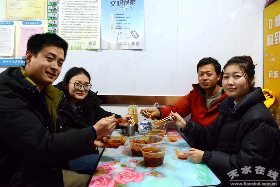 ▲圖中左一為這位食客在品嘗天水麻辣燙