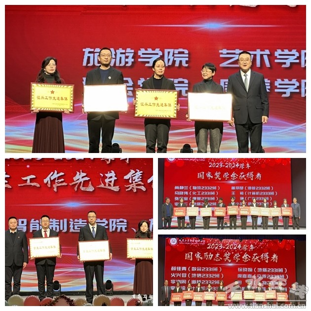 隨后,校領導為“2024年征兵先進集體”“2023-2024學年學生工作先進集體”“2023-2024學年國家獎學金”獲得者、“2023-2024學年國家勵志獎學金”獲得者頒發(fā)了獎牌和獎勵,對以上先進集體和先進個人進行了表彰。