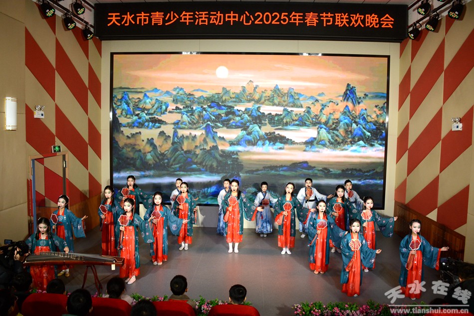 晚會節(jié)目共分為“金蛇舞動,喜迎新春; 童心綻放,夢想起航;花開未來,共赴春天”三個篇章,包括合唱、舞蹈、樂器演奏、秦腔、音樂舞臺劇、武術、情景詩朗誦等13個節(jié)目,現場演出的200多名學生都是天水市青少年活動中心參加藝術類培訓的學生。