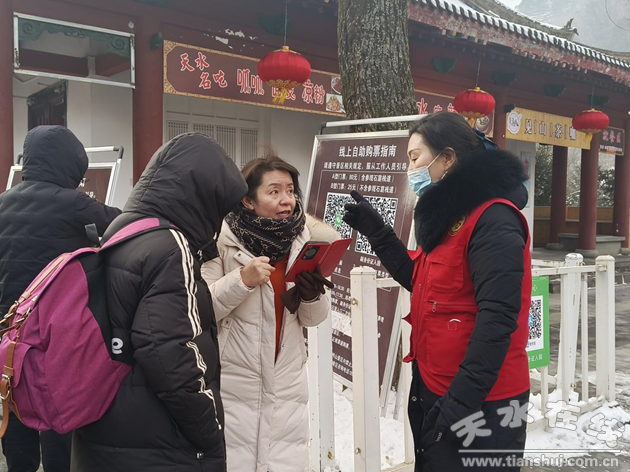 面對(duì)如織的客流,景區(qū)工作人員毫無(wú)怨言,始終堅(jiān)守在旅游接待的第一線(xiàn)。無(wú)論是景區(qū)入口,還是蜿蜒的游覽路線(xiàn),亦或是人來(lái)人往的游客中心,都能看到他們忙碌的身影。他們?nèi)旌蛑凳兀瑸橛慰吞峁┘?xì)致周到的咨詢(xún)引導(dǎo)服務(wù),耐心解答游客的各種疑問(wèn);維持現(xiàn)場(chǎng)秩序,保障游客有序參觀;時(shí)刻保持警惕,隨時(shí)準(zhǔn)備應(yīng)對(duì)各類(lèi)突發(fā)狀況,處理應(yīng)急事件。他們憑借高度的責(zé)任心和敬業(yè)精神,用暖心貼心的服務(wù),在景區(qū)內(nèi)編織出一道亮麗的風(fēng)景線(xiàn),成為麥積山春節(jié)期間最美的守護(hù)者。