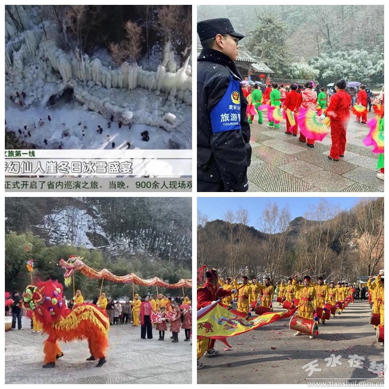 春節(jié)前夕,景區(qū)利用仙人崖的資源優(yōu)勢(shì),推出“冰雪奇緣”嘉年華,提供畫蛇添福、圍爐煮茶等冰雪活動(dòng),增加旅游的文化內(nèi)涵和吸引力。在麥積山游客服務(wù)中心和景區(qū)上演天水社火、舞龍等民俗表演,增添節(jié)日氛圍。