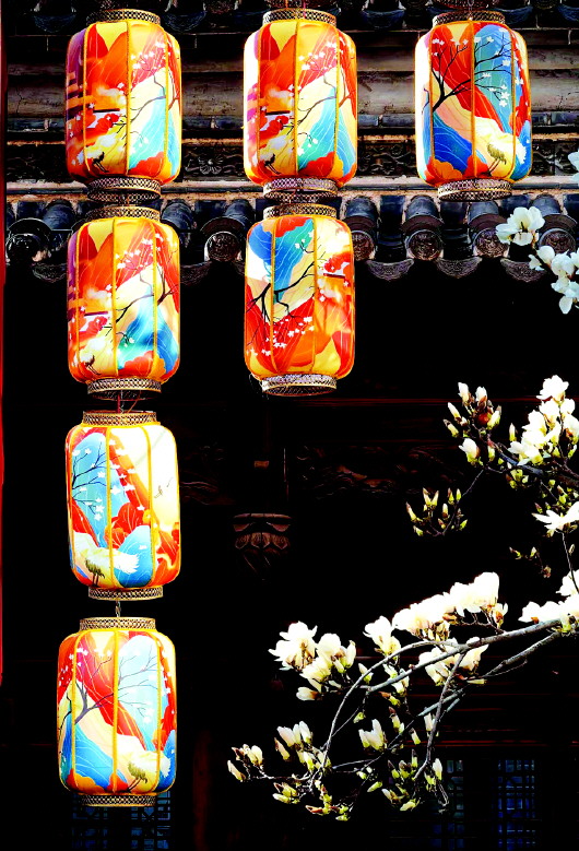 今年氣溫回暖較早,玉蘭的花期比往年提前,已于3月下旬進(jìn)入盛放期,其花瓣在晨光中透出半透明的光澤,與古建筑的雕花門(mén)樓、脊獸斗拱構(gòu)成一幅動(dòng)態(tài)的水墨畫(huà)。