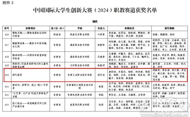 近日,教育部公布了中國國際大學生創(chuàng)新大賽(2024)全國總決賽成績,甘肅工業(yè)職業(yè)技術(shù)學院學生團隊項目《闊氣麻茶》以“文化傳承+青年創(chuàng)新”的獨特模式,榮獲全國銅獎,彰顯了甘肅工業(yè)職業(yè)技術(shù)學院學子立足本土、敢闖會創(chuàng)的青春擔當。