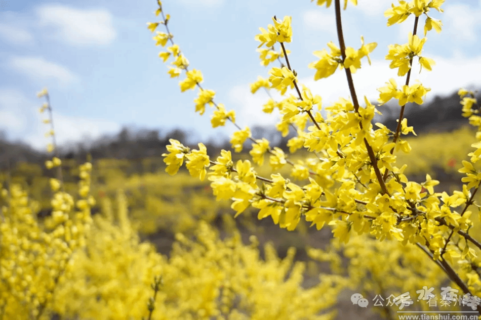 【連翹花·燦爛奪目】若說桃杏爭艷是春的喧嘩樂章,那天水秦州的連翹花,便是最明亮的春日宣言!山野間,叢叢金黃如焰,恣意潑灑崖畔,遠眺似陽光傾瀉,近觀如鎏金綴枝。山風掠過,花浪起伏跌宕,仿佛一闕滾燙的春之交響,燦爛得叫人目眩!