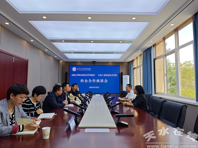 5月8日,甘肅工業(yè)職業(yè)技術(shù)學(xué)院與福建五洲佳豪酒店管理集團(tuán)舉行校企合作座談會(huì)。紀(jì)委書記、監(jiān)察專員賈昌麟出席,學(xué)校招生就業(yè)處負(fù)責(zé)人、旅游學(xué)院領(lǐng)導(dǎo)班子及相關(guān)專業(yè)教師參會(huì)。
