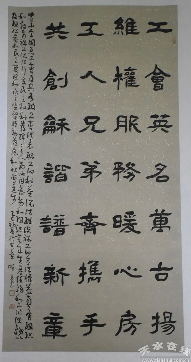 百年征程波瀾壯闊,百年初心歷久彌堅(jiān)。為熱烈慶祝中華全國總工會(huì)成立100周年,天水市總工會(huì)、天水市文學(xué)藝術(shù)界聯(lián)合會(huì)舉辦了“永遠(yuǎn)跟黨走 奮進(jìn)新征程”慶祝中華全國總工會(huì)成立100周年天水市職工書畫攝影展活動(dòng)。自活動(dòng)啟動(dòng)以來,全市各行業(yè)職工和書畫攝影愛好者踴躍投稿,題材豐富、形式多樣的作品紛至沓來。經(jīng)過評(píng)審,一幅幅構(gòu)思精巧、技藝精湛的作品脫穎而出。即日起,我們將通過網(wǎng)絡(luò)系列展播的形式,帶您領(lǐng)略優(yōu)秀作品的獨(dú)特魅力,在字里行間、色彩光影中,感受那份熾熱的匠心與深厚的情懷!