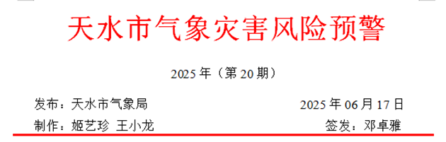 天水市氣象局2025年06月17日11時20分發(fā)布強(qiáng)對流黃色風(fēng)險預(yù)警