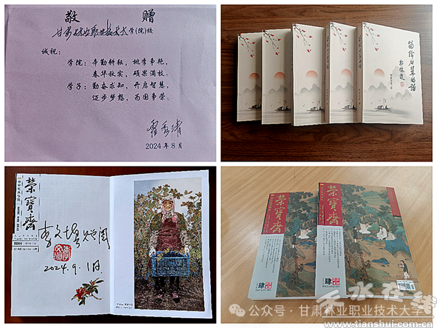 中國地質(zhì)科學(xué)院地質(zhì)研究所研究員梁祥濟捐贈個人專著《江山如此多嬌》精裝套書,書中聚焦礦床地質(zhì)、實驗地球化學(xué)等前沿內(nèi)容,凝結(jié)其深耕地質(zhì)科研數(shù)十載的經(jīng)驗。西河玉泉林場退休工程師楊克棟向?qū)W校捐贈300冊林業(yè)專業(yè)圖書,其中包括參與編撰的《甘肅省主要樹種造林技術(shù)》,其一線實踐中積累的荒山造林、營林改造等技術(shù)資料,為林業(yè)人才培養(yǎng)提供重要參考。中國書法家協(xié)會會員李文填捐贈個人著作《榮寶齋》;天水市秦州區(qū)政協(xié)原主席霍秀清捐贈自傳體書籍《留給后輩的話》;文化學(xué)者侯金保、郭永峰合編的《天水古今詩詞選》收錄地域文化精髓,助力地方文史研究。
