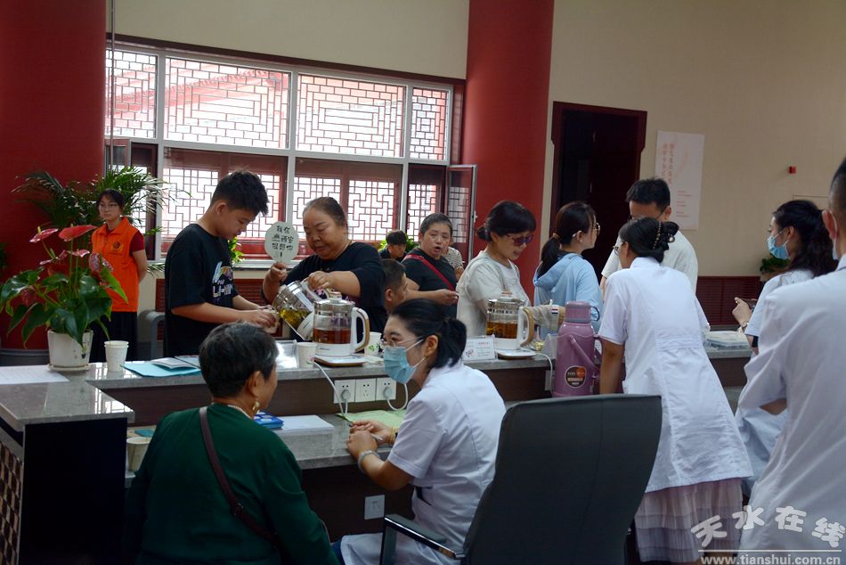 活動現(xiàn)場設(shè)置多項(xiàng)貼心服務(wù):來自天水市中醫(yī)醫(yī)院的專業(yè)中醫(yī)師調(diào)配的時令養(yǎng)生飲品免費(fèi)向游客供應(yīng),幫助大家驅(qū)散暑氣、調(diào)理身心;中醫(yī)從業(yè)者在現(xiàn)場提供穴位按摩、足浴療法、耳針療法、針灸推拿等服務(wù);此外,經(jīng)驗(yàn)豐富的中醫(yī)專家坐診,為游客解答關(guān)于中醫(yī)養(yǎng)生、日常保健、疾病預(yù)防等方面的疑問。