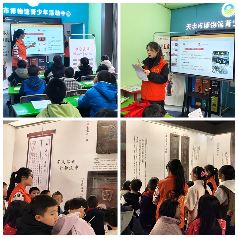 活動開篇,社教專員以“嘉風德韻——天水市博物館館藏匾聯(lián)精粹展”展覽PPT為引,用圖文并茂的形式拆解匾聯(lián)的歷史淵源、文化內(nèi)涵與藝術價值;隨后聚焦天水伏羲廟匾聯(lián),將伏羲文化與地方特色深度結合,為“小偵探”們筑牢知識基礎,做好探寶準備。