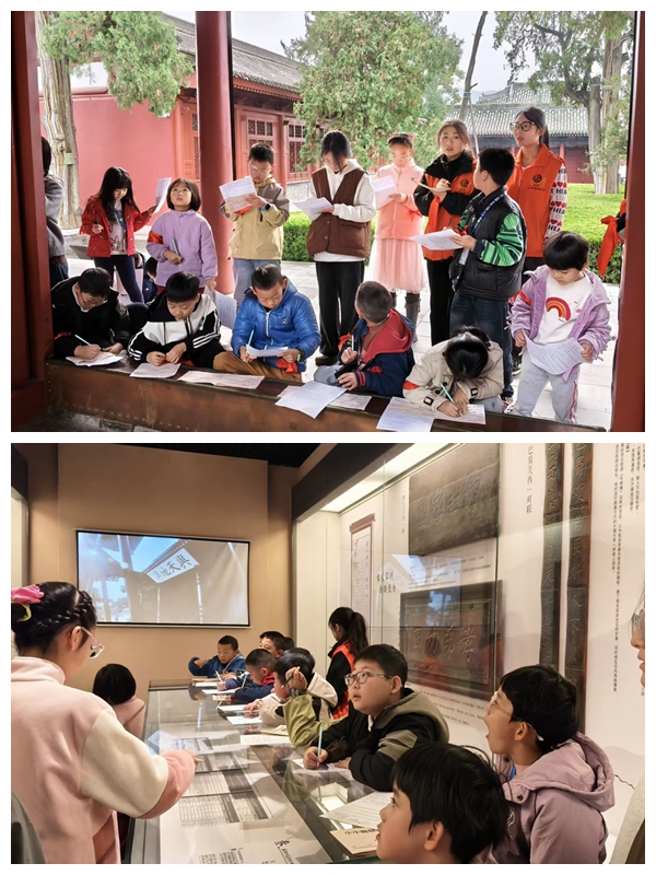 “小小匾聯(lián)博物館尋寶活動”通過“知識筑基—趣味探寶—沉浸感悟—生活延伸”四大環(huán)節(jié)層層推進。社教團隊前期精心打磨細節(jié),匯總伏羲廟匾額與楹聯(lián)資源,為每副匾聯(lián)制定了專屬編號,并設計兼具知識性與互動性的“線索卡”和“偵探手冊”,讓探索活動更具儀式感和神秘感。