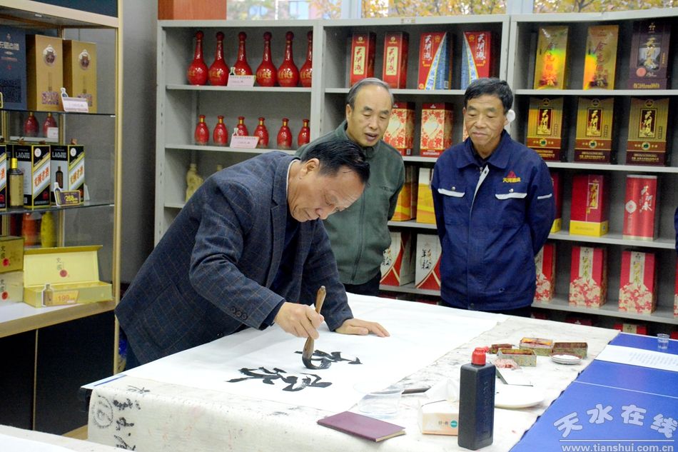 與此同時,老年書畫研究會的書法繪畫團隊在現(xiàn)場搭建起書寫臺,筆墨紙硯一應(yīng)俱全。書法家們揮毫潑墨,筆走龍蛇,“故里釀春秋,一盞敬羲皇”“純糧老味道,歷史新傳承”“九九重陽,敬老情長”等一幅幅蒼勁有力的書法作品相繼誕生。有的老人還主動上前,提筆書寫自己的重陽寄語,現(xiàn)場墨香與酒香交織,滿是文化氣息。這些作品一部分贈予天河酒廠收藏,一部分現(xiàn)場向觀眾贈送,拿到作品的老人喜笑顏開,直呼“這是最有意義的重陽禮物”。
