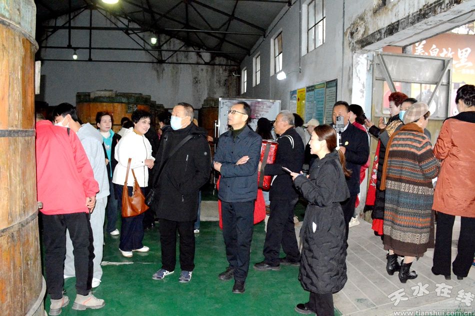 上午8時許,老年朋友們身著盛裝,在老年大學(xué)門口集合,懷著期待的心情乘坐專屬大巴前往清水縣天河酒廠。抵達酒廠后,在專業(yè)講解員的引導(dǎo)下,老人們先后走進釀造車間、儲酒倉庫與文化展廳,開啟了一場“舌尖上的文化之旅”。