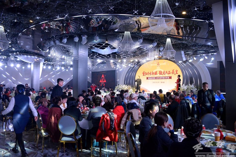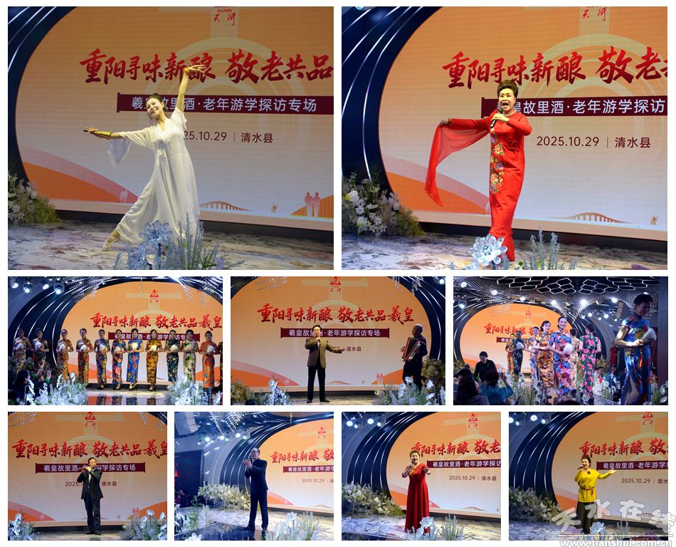 活動最后,老人們前往酒店享用精心準(zhǔn)備的宴食。舞臺上,詩朗誦、模特走秀、秦腔、歌曲伴隨著陣陣掌聲,餐桌上,“羲皇故里”酒香氣四溢,老人們舉杯共飲,暢談今日的收獲與喜悅。這場充滿文化味、人情味的重陽游學(xué)活動圓滿落幕,而“羲皇故里”酒傳遞的敬老溫情,仍在繼續(xù)流淌。