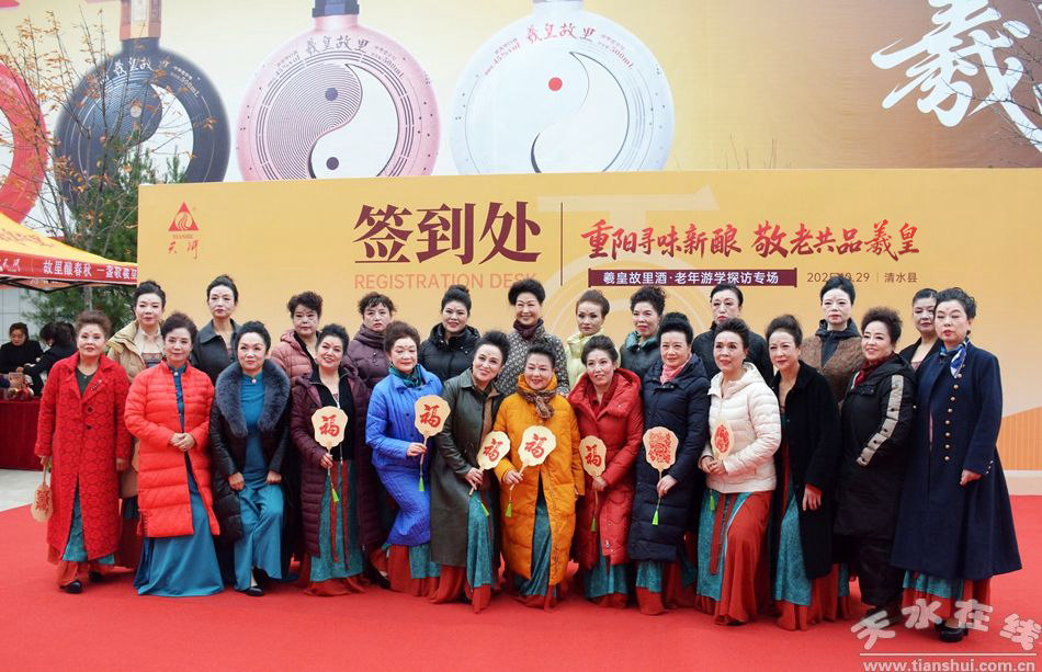 歲歲重陽,情暖金秋。當(dāng)傳統(tǒng)敬老佳節(jié)與千年酒文化相遇,一場承載著溫度與深度的“重陽尋味新釀·敬老共品羲皇——羲皇故里酒老年游學(xué)探訪專場”活動10月29日(重陽節(jié))在清水縣天河酒廠舉行。這場由天水市委老干部局、 天河酒業(yè)、甘肅羲商源商貿(mào)有限責(zé)任公司主辦,天水老年大學(xué)、天水市老年書畫研究會承辦的活動,不僅為近兩百位老年朋友送上了重陽節(jié)真摯祝福,更以“游學(xué)探訪”為紐帶,串聯(lián)起文化傳承、敬老關(guān)懷與品牌擔(dān)當(dāng),在秋日里的天河之畔,書寫了一曲傳統(tǒng)與溫情交融的動人樂章。