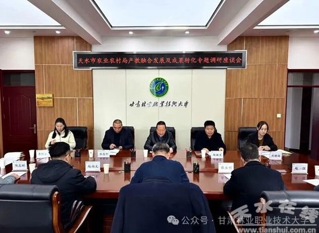 11月26日,天水市農(nóng)業(yè)農(nóng)村局黨組成員、副局長徐赟,市果樹研究所所長楊煥昱,市農(nóng)業(yè)科學(xué)研究所副所長張忠平一行來學(xué)校就產(chǎn)教融合發(fā)展及科技成果轉(zhuǎn)化工作開展專項調(diào)研。學(xué)校科學(xué)技術(shù)處及相關(guān)職能部門負(fù)責(zé)人參加調(diào)研座談會,黨委委員、副校長史萬瓊主持。