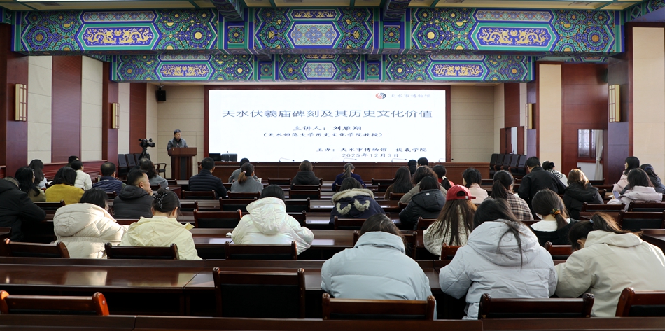 12月3日,天水市博物館邀請(qǐng)?zhí)焖畮煼洞髮W(xué)教授劉雁翔作了題為《有石為證——天水伏羲廟碑刻及其歷史文化價(jià)值》的學(xué)術(shù)講座,講座由天水市博物館館長(zhǎng)劉玉璞主持,天水行業(yè)博物館同仁、天水市博物館干部職工、天水師范大學(xué)歷史文化學(xué)院部分師生以及對(duì)天水地區(qū)石刻文化感興趣的社會(huì)人士80余人聆聽了講座。
