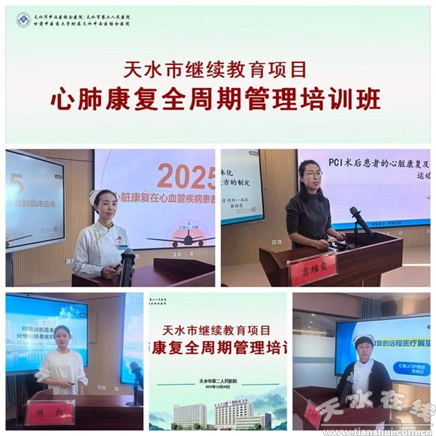為進(jìn)一步提升全市醫(yī)護(hù)人員心肺康復(fù)全周期管理專業(yè)能力,規(guī)范臨床心肺康復(fù)診療流程,助推天水市心肺康復(fù)學(xué)科建設(shè)與發(fā)展,12月26日,天水市第二人民醫(yī)院護(hù)理部在門急診綜合大樓11樓會(huì)議室舉辦市級(jí)繼教項(xiàng)目——心臟康復(fù)全周期管理培訓(xùn)班。市二院護(hù)理部主任陳少娟作致辭講話,副主任王利利主持培訓(xùn)會(huì)。全市各級(jí)醫(yī)療機(jī)構(gòu)相關(guān)專業(yè)醫(yī)護(hù)人員約100余人參加。