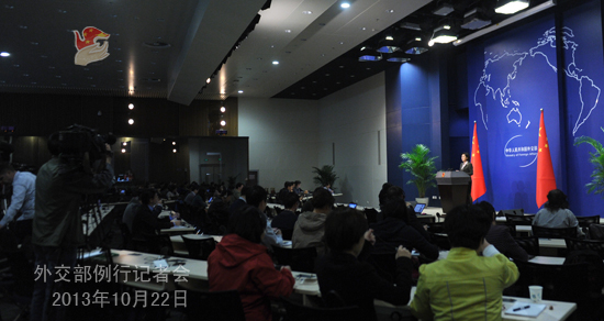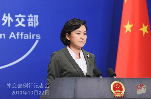 2013年10月22日,外交部發(fā)言人華春瑩主持例行記者會。