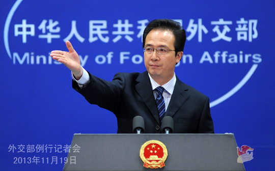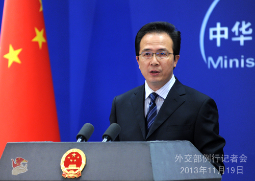 2013年11月19日,外交部發(fā)言人洪磊主持例行記者會(huì)。