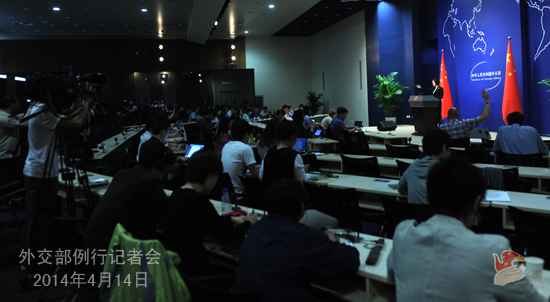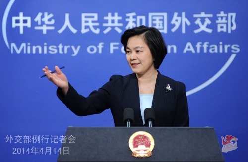 2014年4月14日,外交部發(fā)言人華春瑩主持例行記者會。