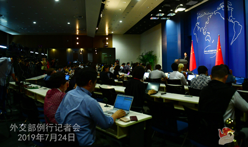 問:7月23日,國際貨幣基金組織發(fā)布《世界經(jīng)濟(jì)展望》報告,將2019年和2020年全球經(jīng)濟(jì)增長預(yù)期均下調(diào)0.1%,中國經(jīng)濟(jì)增長預(yù)期均下調(diào)0.1%至6.2%和6.0%。報告認(rèn)為,中國經(jīng)濟(jì)第一季度增長強勁超出預(yù)期,第二季度增長勢頭有所放緩,中國經(jīng)濟(jì)壓力上升。中方對此有何評論?
