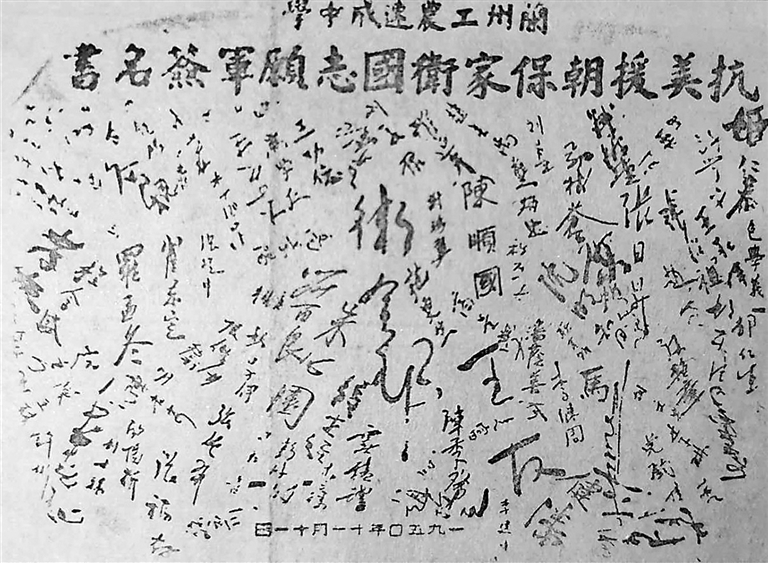 蘭州工農(nóng)速成中學(xué)抗美援朝簽名書。