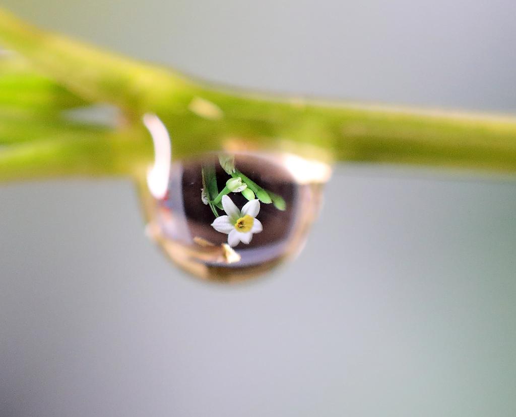在浙江省諸暨市三都小學(xué),水珠上映著開放的水仙花。新華社發(fā)(駱善新攝)