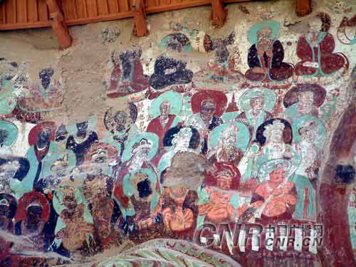 拉梢寺一佛二菩薩頭頂右側(cè)部分壁畫