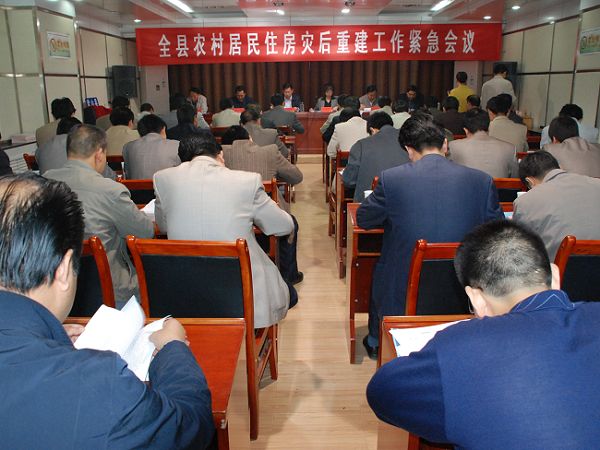 為了認(rèn)真貫徹落實(shí)省、市有關(guān)災(zāi)后重建工作會(huì)議精神,正確分析當(dāng)前農(nóng)村災(zāi)后重建工作形勢(shì),進(jìn)一步安排部署下段農(nóng)村災(zāi)后重建工作, 9月15日,武山縣召開(kāi)了全縣農(nóng)村居民住房重建緊急會(huì)議。