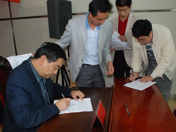 (副縣長(zhǎng)紀(jì)永安代表縣政府與各鄉(xiāng)鎮(zhèn)簽訂了農(nóng)村居民住房恢復(fù)重建責(zé)任書(shū))