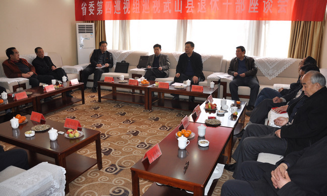3月28日,省委第四巡視組在寧遠(yuǎn)賓館召開武山縣離退休老干部工作座談會(huì)。副廳級(jí)巡視專員周有信、正處級(jí)巡視專員張亞軍出席座談會(huì)。