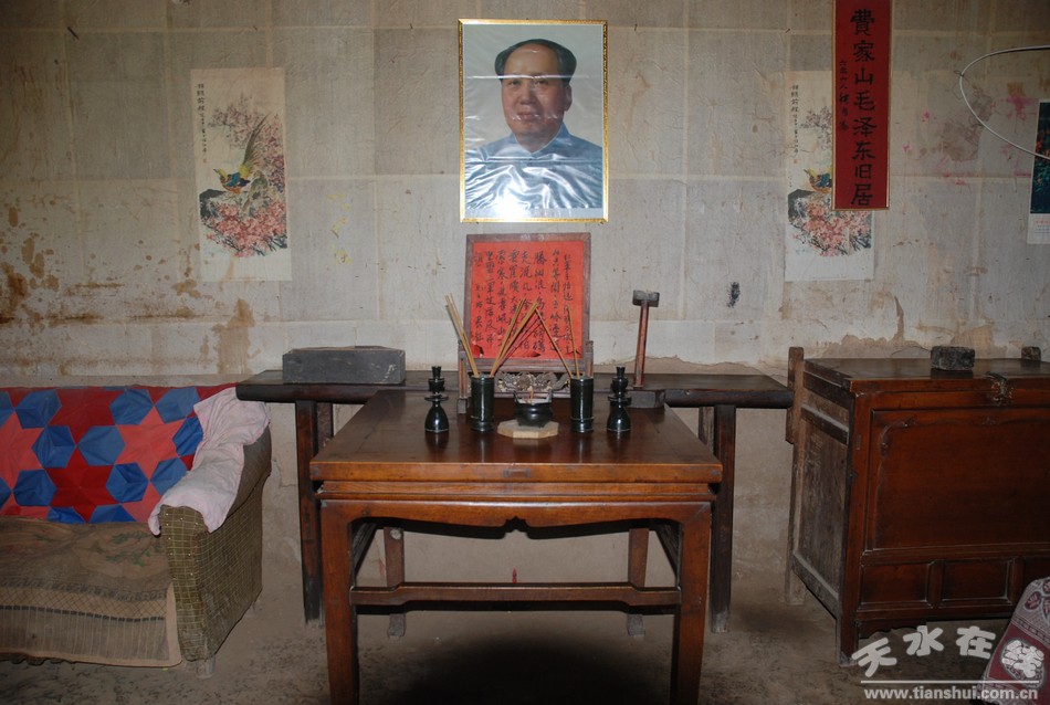 費家山毛澤東長征舊居位于甘肅省天水市武山縣鴛鴦鎮(zhèn)費家山村,村西費維平家中。建筑面積30平方米,保護范圍面積200平方米,為1935年9月26日紅一方面軍長征過渭河后,上北山第一次休息的地方,毛澤東在此居住、辦公一夜,第二天離開,去通渭榜羅。該房屋坐西朝東,為單面坡硬山頂土木結(jié)構(gòu)建筑,寬6.7米,深4.5米,檐高3.3米左右,建筑面積約30平方米。現(xiàn)存遺物有馬克思像、銅碗、銅壺、瓷盤等四件已存武山縣博物館。針線盒、油燈、條案、木椅、油甕留費維平家使用。費家山村離鴛鴦鎮(zhèn)15公里。