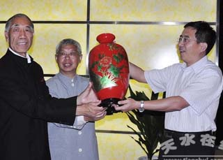 視察結(jié)束后,武山縣委、縣政府舉行了歡迎宴會(huì),縣長(zhǎng)索鴻賓主持宴會(huì),縣委書記張建杰致了歡迎辭。張建杰說,武山是國(guó)家級(jí)蔬菜標(biāo)準(zhǔn)化示范縣、全國(guó)綠色農(nóng)業(yè)示范縣、全國(guó)科技進(jìn)步縣、“中國(guó)韭菜之鄉(xiāng)”、“甘肅書畫藝術(shù)之鄉(xiāng)”,素有“玉器之鄉(xiāng)”的稱譽(yù)。近年來,縣委、縣政府搶抓發(fā)展機(jī)遇,開拓進(jìn)取、奮力拼搏,強(qiáng)力推進(jìn)武山跨越式科學(xué)發(fā)展,全縣經(jīng)濟(jì)綜合實(shí)力顯著增強(qiáng),國(guó)民生產(chǎn)總值等主要經(jīng)濟(jì)指標(biāo)連續(xù)五年保持兩位數(shù)增長(zhǎng),成為全縣經(jīng)濟(jì)社會(huì)發(fā)展最快、城鄉(xiāng)面貌變化最大、民生問題解決最好的時(shí)期。特別是在今年以來,大力實(shí)施“11253”區(qū)域發(fā)展戰(zhàn)略,成功舉辦了全省蔬菜生產(chǎn)武山現(xiàn)場(chǎng)會(huì)、中國(guó)天水·武山蔬菜博覽會(huì)、水簾洞拉梢寺世界摩崖大佛祈福游活動(dòng)、著名秦腔表演藝術(shù)家孫存蝶武山專場(chǎng)演出等活動(dòng),進(jìn)一步加強(qiáng)了對(duì)外合作交流,提高了武山的知名度。張建杰希望各位老領(lǐng)導(dǎo)常來武山走一走、看一看,一如既往地關(guān)心和支持武山的發(fā)展。張建杰表示,武山縣委、縣政府將以此視察為契機(jī),進(jìn)一步搶抓機(jī)遇,完善思路,強(qiáng)化措施,狠抓落實(shí),努力推動(dòng)全縣經(jīng)濟(jì)社會(huì)跨越式科學(xué)發(fā)展。