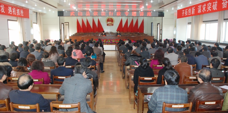 為進一步推進依法行政、建設(shè)法治政府進程,切實做好依法行政工作,11月9日,武山縣舉辦依法行政專題講座?h委常委、宣傳部長陳鴻,縣人大常委會副主任鄧茂宗,縣政協(xié)副主席馬進及縣直部門、雙管單位科級領(lǐng)導干部共計300多人聆聽了講座。講座由縣委常委、副縣長康志鋒主持。