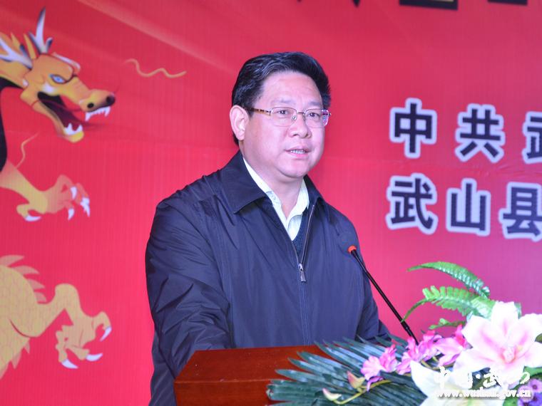 縣委書記張建杰作了熱情洋溢的致辭。他代表縣四大組織和47萬武山人民對(duì)多年來一直關(guān)心、支持、幫助武山發(fā)展的在蘭武山人士表示衷心的感謝,對(duì)在蘭工作、生活的所有武山籍人士,以及在武山工作過的各界人士表示新春的祝福和良好的祝愿。他說,剛剛過去的2011年,在社會(huì)各界特別是廣大武山在外人士的熱心關(guān)注、真心支持和盡力幫助下,縣四大組織團(tuán)結(jié)帶領(lǐng)全縣廣大干部群眾,搶抓發(fā)展機(jī)遇,發(fā)揮比較優(yōu)勢(shì),大力實(shí)施“11253”區(qū)域發(fā)展戰(zhàn)略,主要經(jīng)濟(jì)指標(biāo)持續(xù)保持兩位數(shù)增長(zhǎng),縣域經(jīng)濟(jì)綜合實(shí)力顯著增強(qiáng),全縣經(jīng)濟(jì)社會(huì)呈現(xiàn)出持續(xù)快速發(fā)展的良好態(tài)勢(shì)。他希望各位鄉(xiāng)親充分發(fā)揮人脈深厚、信息靈通、博學(xué)睿智的優(yōu)勢(shì),大力宣傳推介武山,積極為家鄉(xiāng)牽線搭橋、招商引資,爭(zhēng)項(xiàng)目、引資金、引技術(shù)、傳信息,一如既往地為家鄉(xiāng)發(fā)展建言獻(xiàn)策,共同把武山的事情辦好,共創(chuàng)武山宏偉壯麗、輝煌燦爛的新篇章。