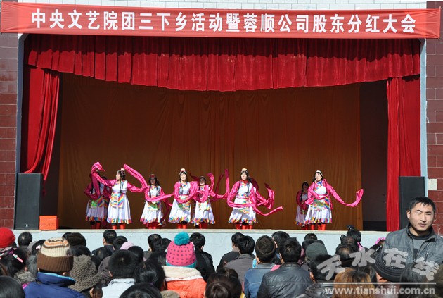 2013年1月16日,在蓉中村書記李振生的帶領(lǐng)下,中國東方演藝集團、中國國家話劇院等中央文藝院團在北順村開展“三下鄉(xiāng)”活動,他們用甜美的歌聲和精彩的表演歌頌武山在全面建成小康社會進程中取得的巨大成就,廣大藝術(shù)家們的濃濃深情和對北順村群眾的關(guān)愛之心感染了現(xiàn)場的每一個人。