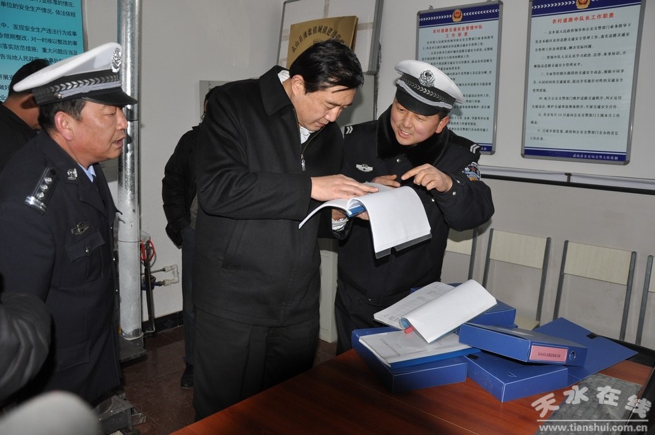 1月14日,天水市委常委、政法委書記趙衛(wèi)東帶領(lǐng)市綜治辦、交通運(yùn)輸局、安監(jiān)局、交警支隊(duì)等相關(guān)部門負(fù)責(zé)人,深入武山縣城區(qū)和灘歌、龍臺兩鄉(xiāng)鎮(zhèn)就貫徹落實(shí)全市道路交通安全專項(xiàng)整治工作會(huì)議精神及工作開展情況進(jìn)行督查指導(dǎo)?h委常委、常務(wù)副縣長康志鋒一同督查。