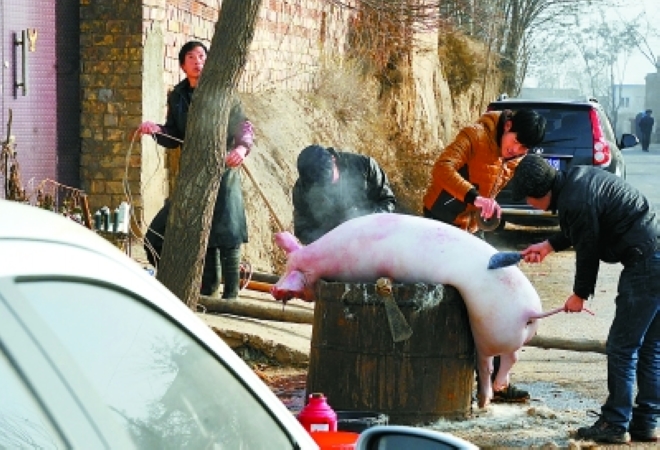 村民們?cè)诿β抵鴼⒛曦i。2013年,北順村村民人均純收入達(dá)到10026元,農(nóng)民的日子越過(guò)越紅火。