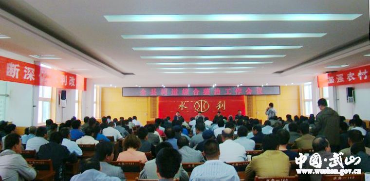 5月23日,武山縣召開河道綜合整治暨防汛減災(zāi)工作會議?h委常委、副縣長辛國海出席會議并講話。縣、鄉(xiāng)、村、組四級防汛責任人,災(zāi)害預(yù)警信息員,各采砂廠負責人及縣水務(wù)局干部職工180余人參加了會議。會議由縣人大常委會副主任汪金祥主持。
