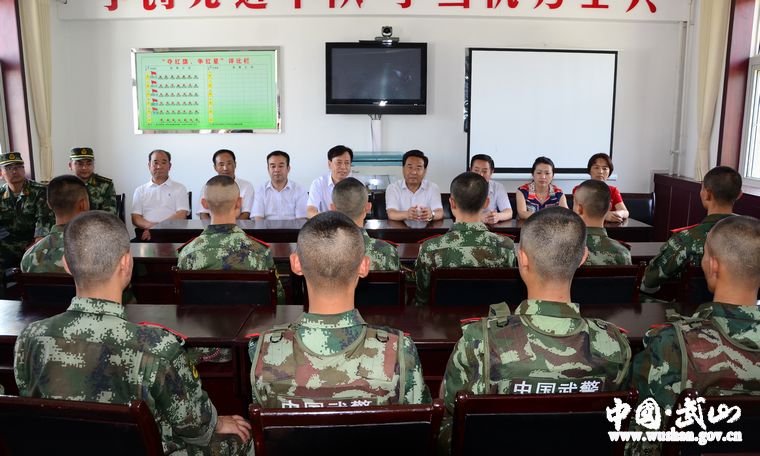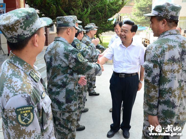 在“八一”建軍節(jié)來(lái)臨之際,7月29日,武山縣委書(shū)記索鴻賓帶領(lǐng)縣四大組織領(lǐng)導(dǎo)及縣直有關(guān)單位負(fù)責(zé)人,來(lái)到縣人武部,68077、68075、68072部隊(duì),武警天水支隊(duì)直屬大隊(duì)、四中隊(duì)、縣中隊(duì)和消防大隊(duì),看望慰問(wèn)駐武部隊(duì)和武警官兵,并提前向他們送去節(jié)日祝福。