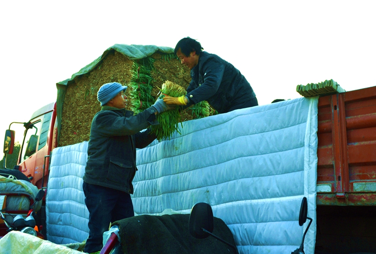 “你們家的這韭菜都已經(jīng)是第三茬了,怎么還這么好,炒出來(lái)的菜不差于新韭,明年我們也要換種子,換成耐寒韭,產(chǎn)量也高......”正在把韭菜打捆裝車的車岸村村民車權(quán)喜被旁邊的菜農(nóng)說(shuō)的合不攏嘴了,高興的說(shuō)到“就是的,今年鄉(xiāng)政府專門請(qǐng)蔬菜種植的技術(shù)專家給大家講解韭菜和西瓜的種植方法,還補(bǔ)貼發(fā)放了種子。你們擔(dān)心這個(gè)那個(gè)的,你看我種的耐寒韭不僅上市早,并且這種韭菜都已經(jīng)第三茬了,菜的品相依舊這么好,依然能賣個(gè)好價(jià)錢,今年的兩個(gè)大棚韭菜都已經(jīng)賣了兩萬(wàn)元了......”旁邊的菜農(nóng)忙說(shuō)到“我們也要買鄉(xiāng)上補(bǔ)貼的種子,看來(lái)還是要勇于接受新品種呀!”