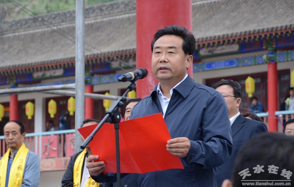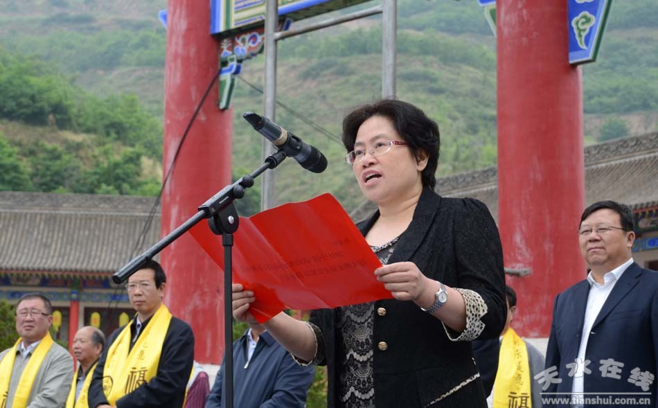 (天水市委常委、紀(jì)委書(shū)記李美華宣布2015中國(guó)·武山水簾洞拉梢寺世界第一摩崖大佛祈福文化旅游節(jié)開(kāi)幕)