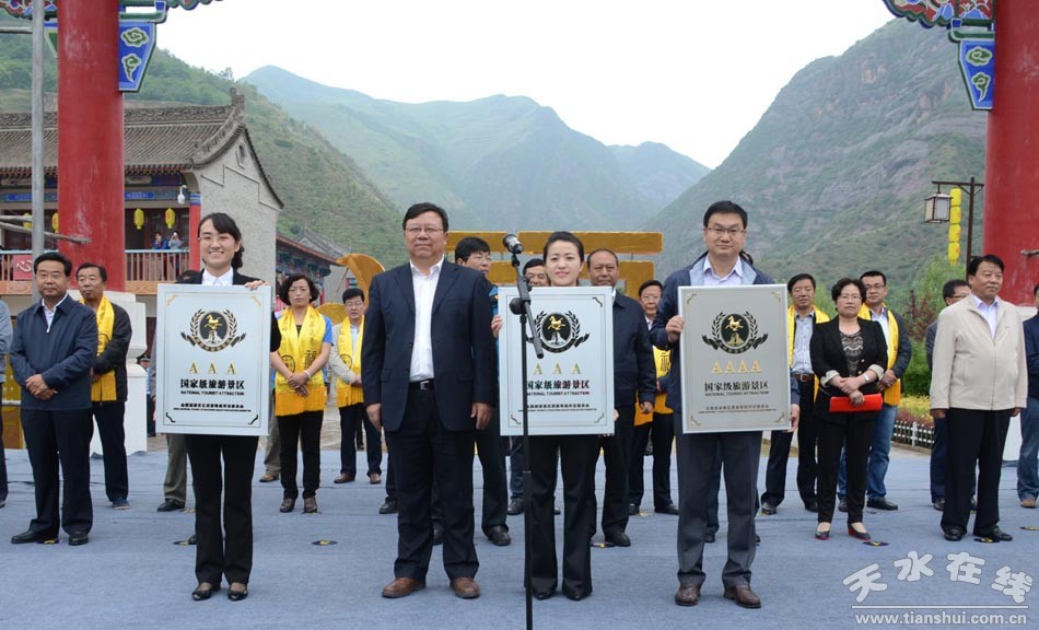 (省旅游局副局長(zhǎng)王富民為武山縣頒發(fā)水簾洞國(guó)家4A級(jí)旅游景區(qū)、木梯寺石窟和臥牛山森林公園國(guó)家3A級(jí)旅游景區(qū)標(biāo)牌)